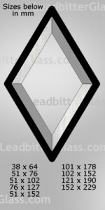 These single bevelled glass pieces can be used to create elegant decorative feature windows and doors. These bevels are 5mm thick and are UV bonded to toughened glass and then leaded to create stunning designs.