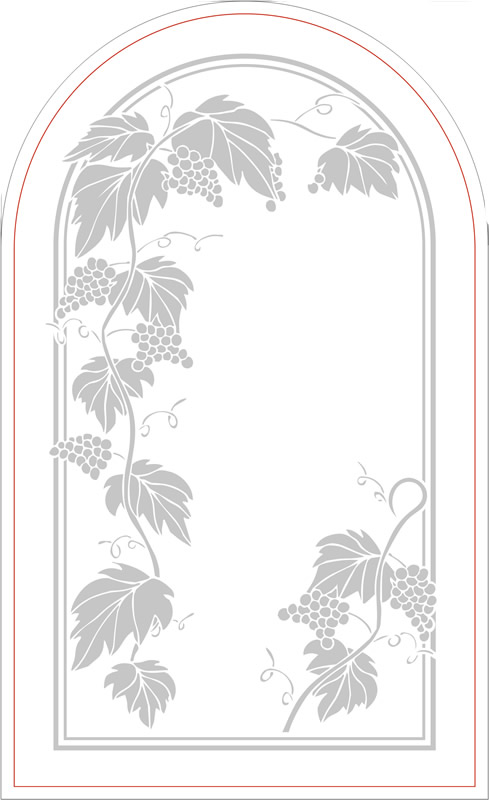 Hello Lizzie, below is the first draft of your design. If you approve the layout I will tidy the design up so the border breaks when it reaches the leaves etc. That is how the original 1520 design is shown. It is easier for us to show you the main design laid on top of the border in case you want anything moved. The background will be etched glass with the border and grapevine detail in clear glass. Please let the studio know if this layout is fine and we will finish the drawing and upload it here for final approval.