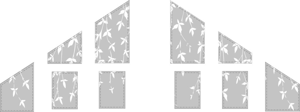 Hi Chetan and Dean, I have attached the 2 drawings of your chosen Hallhill Leaves design as viewed from the inside. The grey areas will be the etched glass with the white leaves and stems being the clear glass. The dashed line shows the visible area. Please let me know if this is fine to proceed with manufacture or if you would like any alterations.