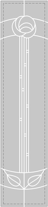 Hi Fiona, here is your drawing to show you how your chosen Mackintosh 317 glass design will look. The grey background will be the sandblasted (etched) glass and the white sections will be clear glass. The dashed line shows the visible area once the glass installed. Please let the studio know if it is fine to proceed with manufacture.