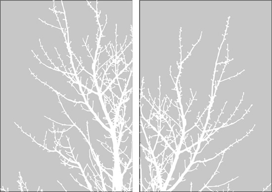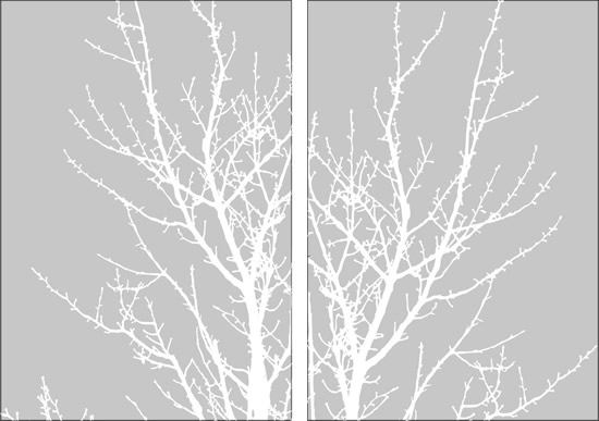 Hello Mr & Mrs Dearnaley, here is your chosen Autumn Tree design shown in your specific glass sizes. We have used a similar layout of panels 3-6 from the recent job you spotted on our site as requested. the gap in between the 2 panels is 43mm as requested. The background will be etched glass with all of the branches and twigs being clear glass. Please let the studio know if it is fine to create the glass.