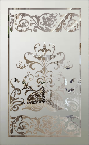 All of our Victorian and Traditional etched glass designs can be used with any border so the images below can be used to create your perfect design. Our Victorian etched glass is created from the basic materials and we can draw a CGI proof for you to approve before the actual glass is created. All etched or sandblasted glass patterns can be etched in two ways. You can have the design in clear with the background etched or you can have the detail etched with a clear background. For your reference, these designs are shown with an etched background.