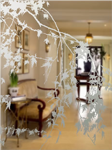 Below are some examples of our Shadows Of Nature – Sycamore Leaves design displayed in various shapes and sizes. The pattern can be created with a clear background and the leaves and branches being etched glass or the opposite way around with the majority of the glass being etched glass. As with any design, this pattern can be created for one glass panel or it can be spread over multiple panels for vestibule doors or windows with openings. All of the glass we create is bespoke so we do not have any completed panels ‘ready to go’ so we make your chosen pattern to your requirements.