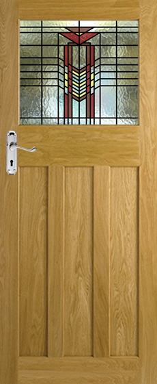 The Dana Range is very popular among fans of Frank Lloyd Wright‘s work. We’ve created the gallery below to show you the design in various door sizes and in both Leaded and Etched Glass. We can create this design in almost any glass size you require and you can change any of the colours in the range at no extra cost. View our plain colours and effect colours for options.