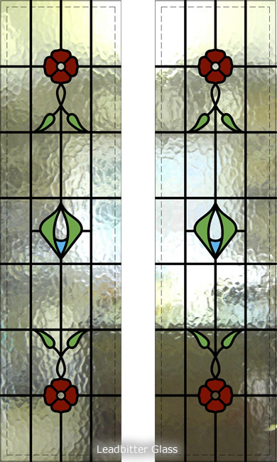 Hello Mr Lewin, below is your altered 668 design shown in your glass sizes. The lead we would use would be our Aged Lead option 2 and the base glass would be Minster toughened glass. The dashed line shows the visible area. Please let the studio know your thoughts on the layout of the design.