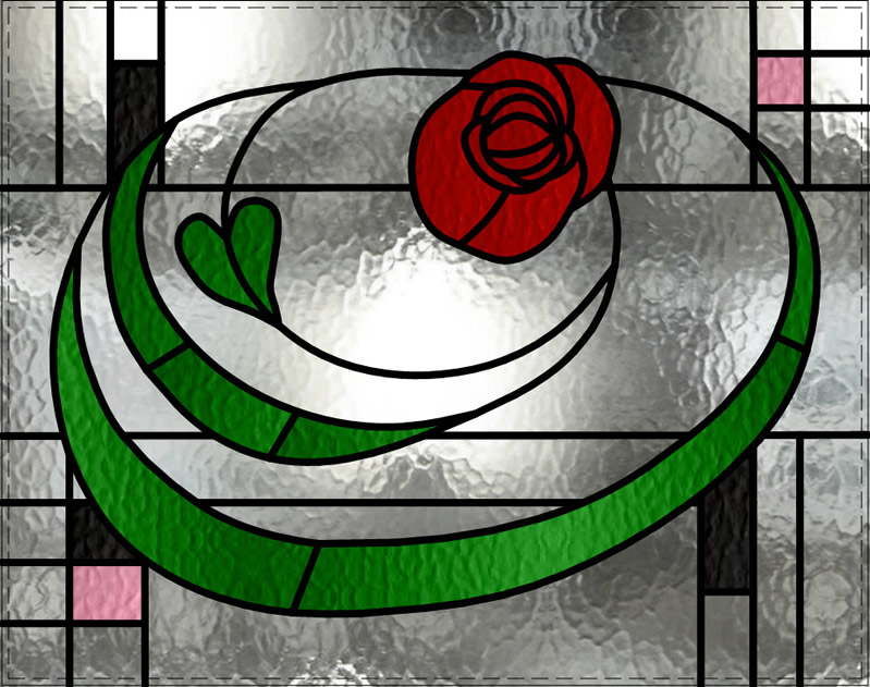 Hi Iona, below is our drawing of your chosen Paisley Rose design in your specific glass sizes. The dashed line shows the visible area so you will only see inside that line once you have had your glass installed. We have used Minster glass for the toughened base glass and our dark antique lead strip. Stippolyte glass can also be chosen instead of the Minster if you wish. Please let the studio know your thoughts on the design.