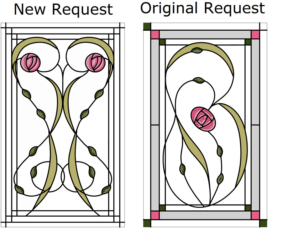 The panel on the right was from the original quote. The new design can be upgraded further if required but we need some feedback on the proposed layout. Bevelled leaves and colours can be added but please let us know your clients thoughts on the designs.