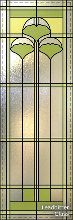 Hello Mr & Mrs Binley, below is your drawing of the Ginkgo design you supplied, shown in your glass sizes of 564 x 1706. The whole glass will be Stippolyte glass as requested and the lead will be our Aged Lead Option 2. The dashed line shows your visible area if your beading was to be 15mm high. You did not state any ‘visible sizes’ on the order so I have had to estimate this measurement. Please check that the beading is no higher than 15mm or some of the border may be obstructed once installed. The colours on this drawing are just for reference and you will be able to visit our studio once the colours have been used to confirm all is well before we complete the panel as agreed.