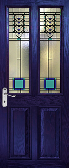 All of our decorative glass patterns for your blue split glazed composite or Victorian door can be used to create perfectly matching toplights and door side panels. To find out more about our beautiful Overlay Leaded Stained Glass product and how versatile it is, visit our Overlay Stained Glass page.
