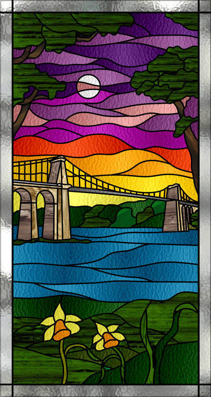 These Overlay Stained Glass landscapes can be used to create stunning landing windows and door panels. We can use these designs (or designs provided by you) to create glass panels using your supplied glass sizes.