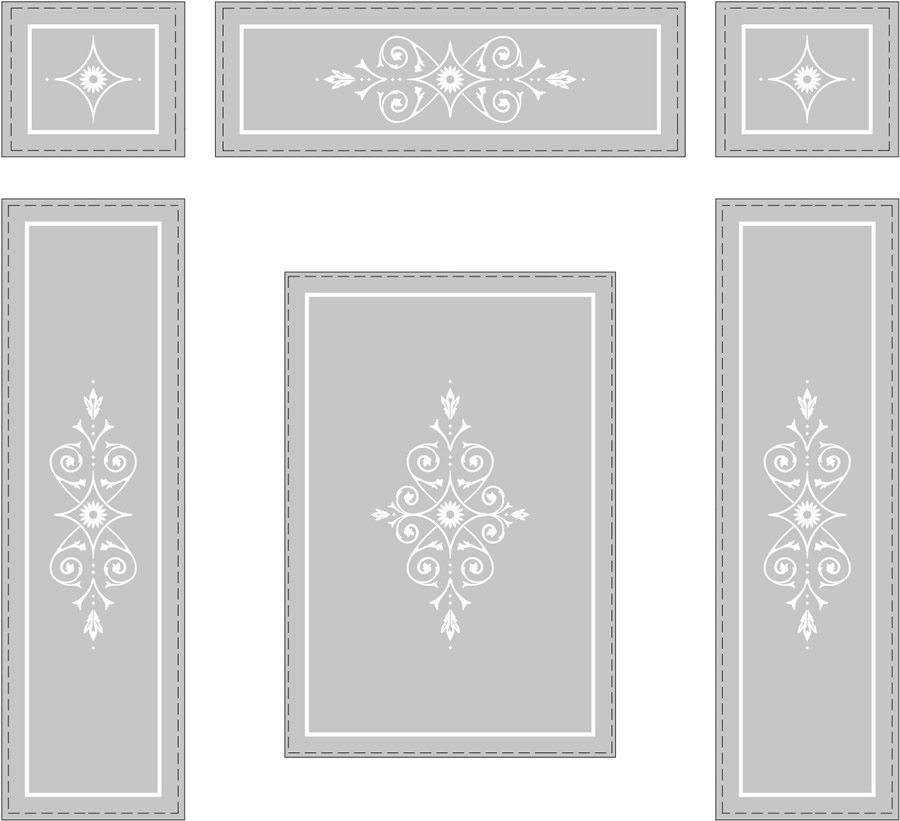 Hi Adil, below is your chosen 1601 etched glass vestibule drawing shown in your specific glass sizes. The dashed line is the visible area so this is where your beading will be located. The glass will be 4mm toughened glass. the background will be fully obscure and the ornate detail shown in white will be clear glass. please let the studio know if it is fine to proceed with manufacture.